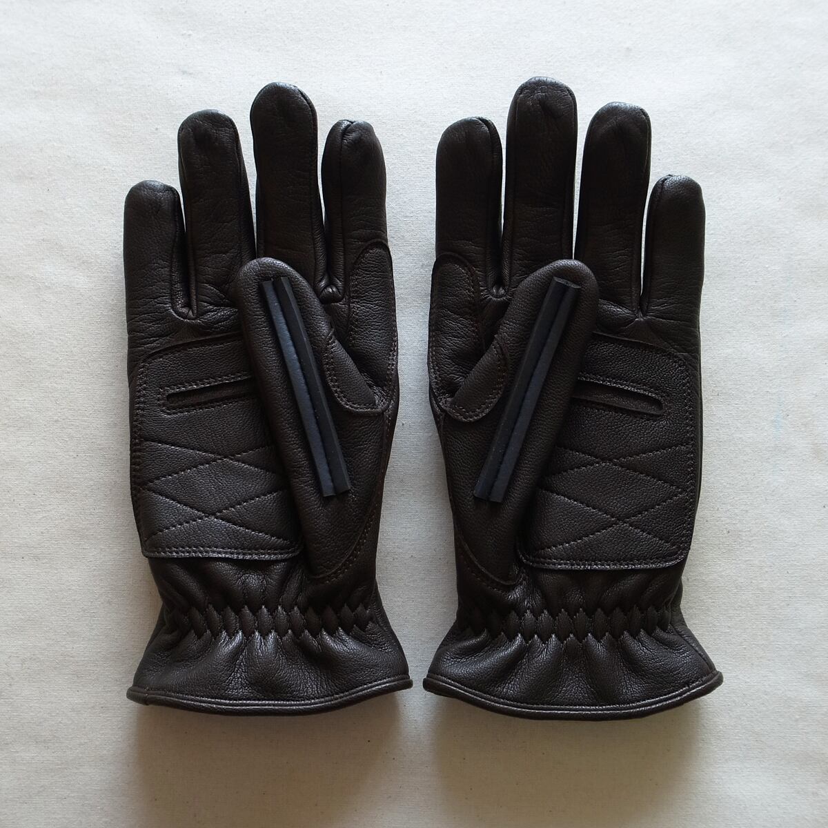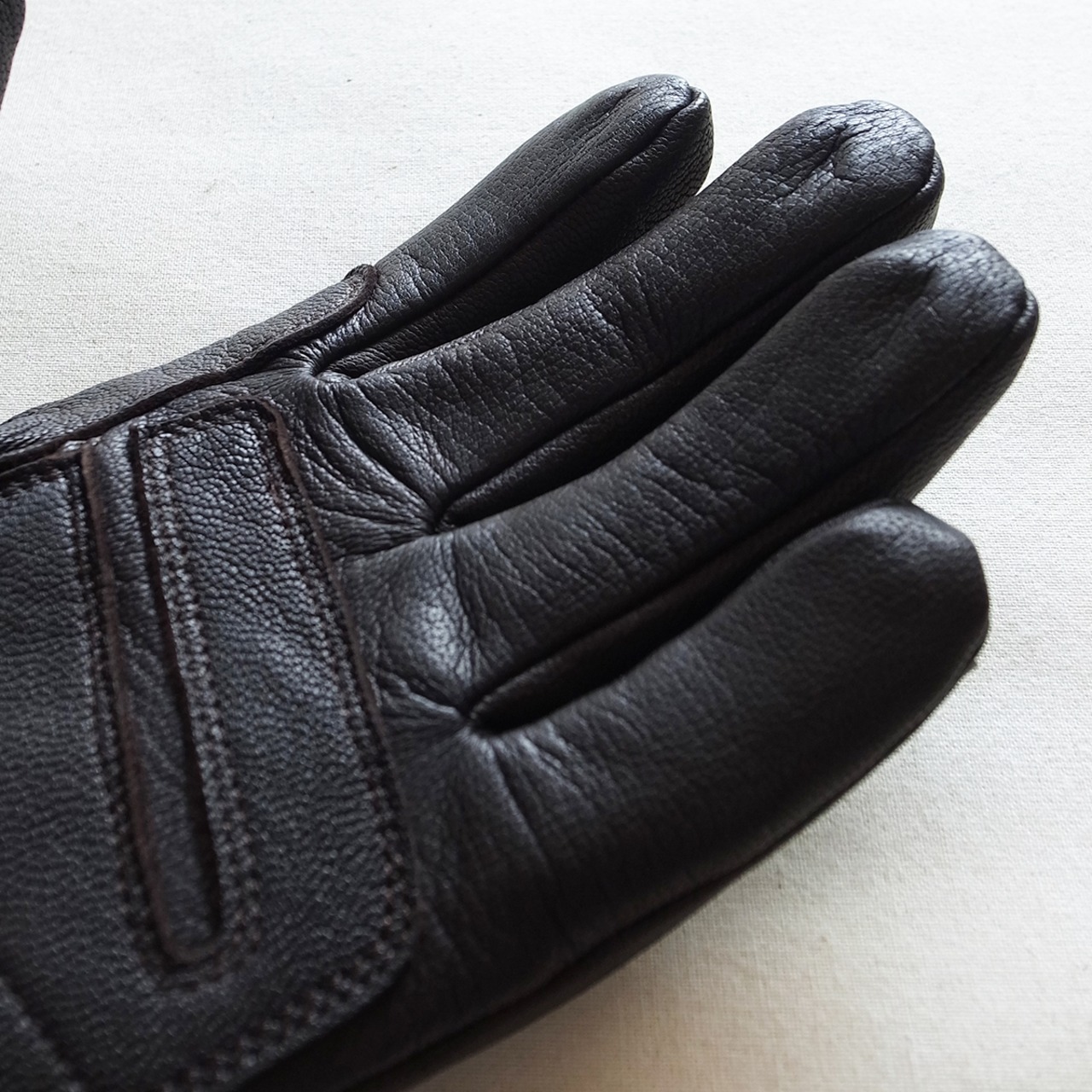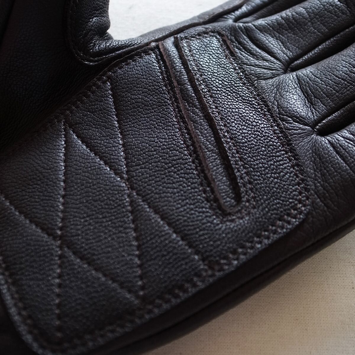 手のひら側の擦れる部分には、共地のパッチを縫い付け強度をアップ。