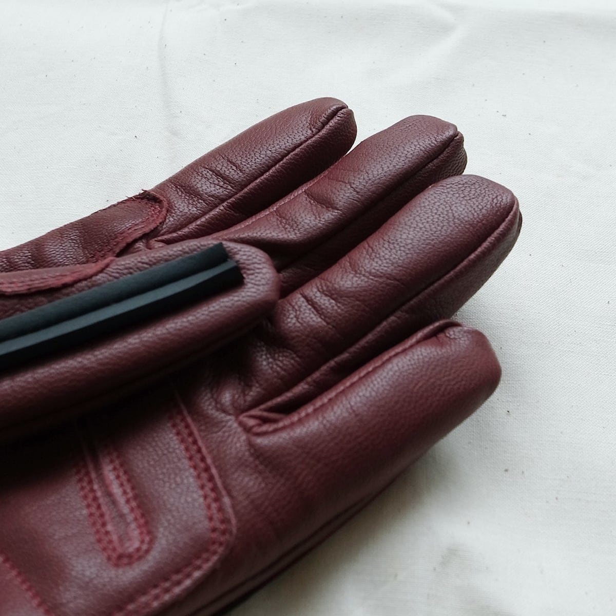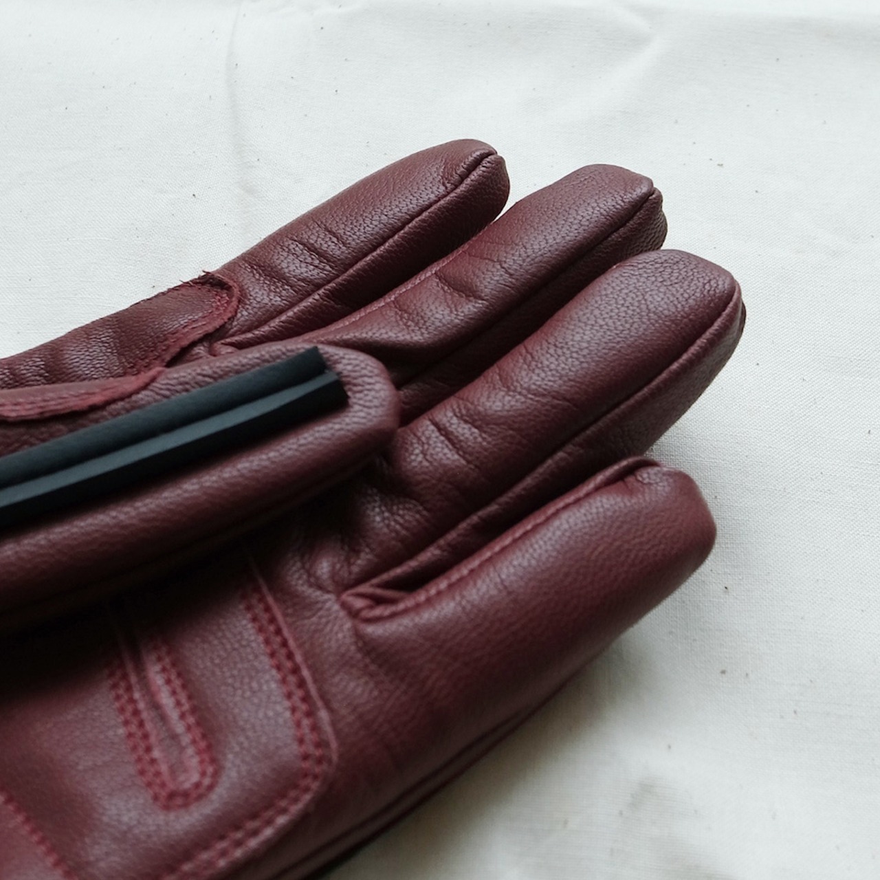 手の甲には、クッション性のあるウレタン素材のスポンジプロテクターを縫い付けました。