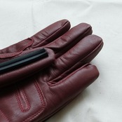 手のひら側の擦れる部分には、共地のパッチを縫い付け強度をアップ。